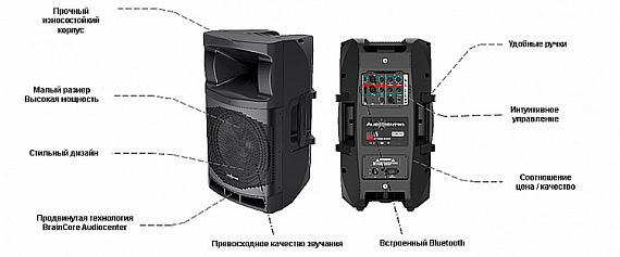 AUDIOCENTER MA15 -- активная 2-полосная АС,15" 400 Вт. DSP и Bluetooth, SPL max 131дБ
