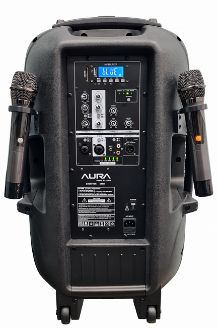 AURA EVENT 15R - акустическая система 280W, Rever, DSP, Bluetooth, 2-UHF микрофона, Li-ion аккум