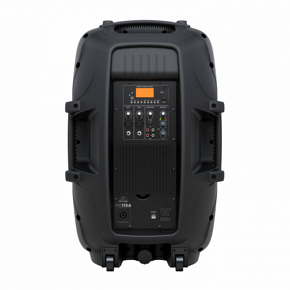 BEHRINGER PK115A - ультракомпактная, двухполосная, активная акустическая система, с 15 " НЧ вуфером с увеличенным ходом звуковой катушки и 1" компрессионным ВЧ твитером. На задней панели встроенный медиаплеер с дисплеем, слотом для SD-карты, USB-портом и приемником Bluetooth. 2-х канальный микшер с отдельными микрофонными / линейными входами, регуляторами громкости и светодиодами перегрузки.2-х полосный эквалайзер и встроенный DSP для максимального контроля и защиты динамиков от перегрузки. Сверхширокая дисперсия, широкоформатный экспоненциальный рупор. Линейный выход на задней панели усилителя позволяет подключать дополнительные акустические системы.