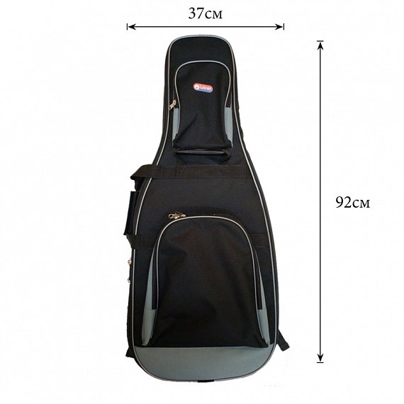 Чехол выполнен в черном цвете с двумя вместительными внешними карманами. Благодаря утеплителю, чехол надежно защитит ваш инструмент от механических воздействий и перепадов температур. А мягкие плечевые ремни и дополнительная ручка позволят комфортно переносить инструмент. Внутри чехол отделан мягкой тканью, под голову грифа есть дополнительная подушечка и фиксатор головы грифа, а также съемная мягкая проставка для инструментов с корпусом меньшего размера