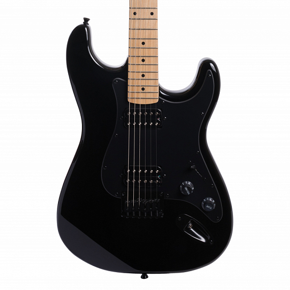 Электрогитара. Форма корпуса стратокастер. Цвет черный. Глянцевое покрытие. Черная фурнитура. Корпус из тополя. Гриф из клена. 22 лада. Анкерный стержень. Накладка на гриф из клена. Фиксированный бридж (hardtail). Конфигурация звукоснимателей H-H. Магниты Alnico V. Управление звуком: громкость, тон, 3-х позиционный переключатель. Рекомендованный диаметр струн 10/46.