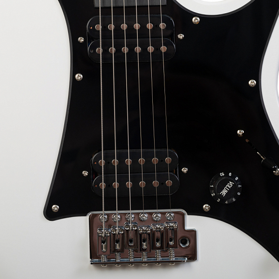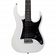 Электрогитара. Цвет белый. Материал корпуса тополь. Материал грифа клен. Накладка грифа из древесно-полимерного композита. Бридж тремоло. Конфигурация звукоснимателей - HH
