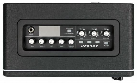 Комбоусилитель серии Hornet имеет два режима управления, а именно режим LIVE (параметры WYSIWYG) и PRESET (параметры могут быть сохранены в виде предустановок). Модель имеет регулируемое усиление, трехполосный эквалайзер и регуляторы громкости, а также модули задержки и реверберации, которыми можно независимо управлять с помощью функции TAP Tempo в реальном времени. Кроме того, серия Hornet имеет встроенный высокочувствительный тюнер и функцию воспроизведения Bluetooth с регулируемым уровнем громкости, а также разъем для наушников для бесшумных занятий.