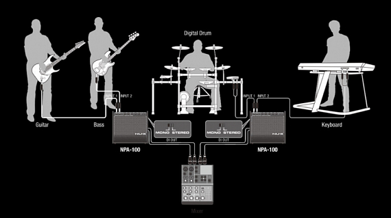 NUX NPA-100 -- сценический активный монитор для цифровых барабанов. 120Вт