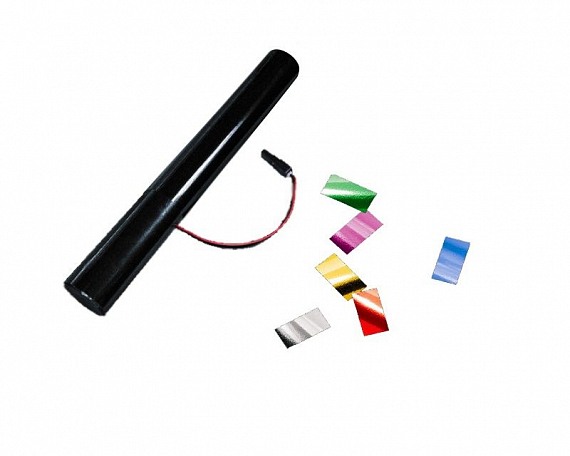 Одноразовый ствол для конфетти-пушек (электрический), 40 см, пустой, со встроенным баллоном сжатого воздуха. Предназначен для выстрелов конфетти и серпантином из Пневматических конфетти-пушек Global Effects Power-Shot.