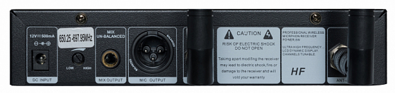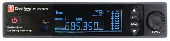 DP-200 Vocal - радиосистема с поясным передатчиком, головным микрофоном и ЖК-дисплеем, переключаемые частоты, использование до 10 систем в одном частотном диапазоне, две внешние антенны на приемнике (диверситивные системы), материал корпуса приемника – металл.