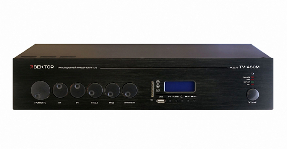 ВЕКТОР ТУ-480 -- комбинированный микшер-усилитель. Мощность 480Вт. Выход 100В\4-16Ом, 1 микр и 2 AUX