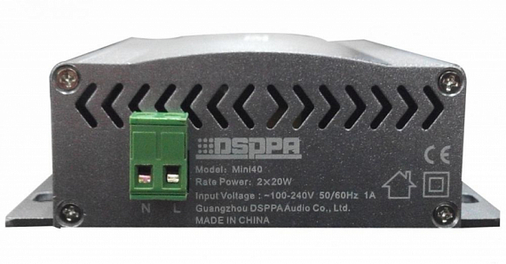 DSPPA Mini-40 -- компактный двухканальный настенный усилитель. Мощность 2х20 Вт 4-16 Ом.