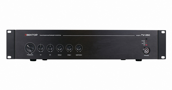 ВЕКТОР ТУ-250 -- комбинированный микшер-усилитель. Мощность 250Вт. Выход 100В\4-16Ом, 1 микр и 2 AU