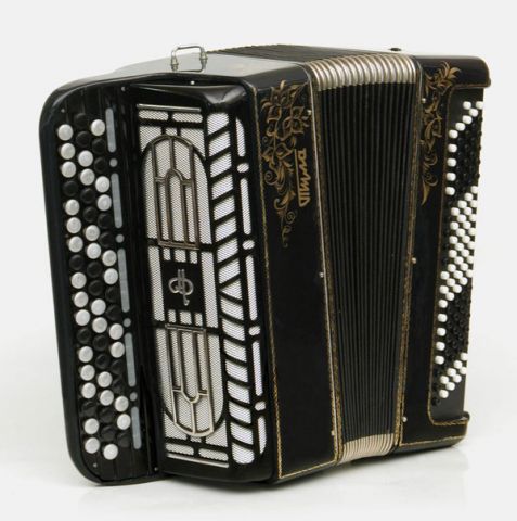 БН-51 ТУЛА 77/46x80-II -- баян ученический, 5-ти рядный, двухголосный, детский, с готовым аккомпанементом 418x206x370 мм, 6 кг.