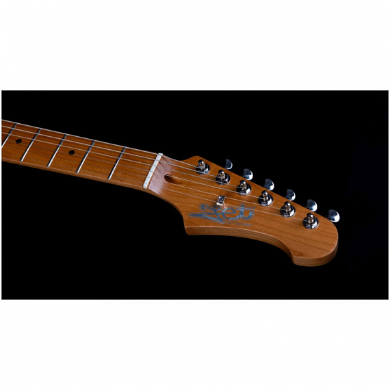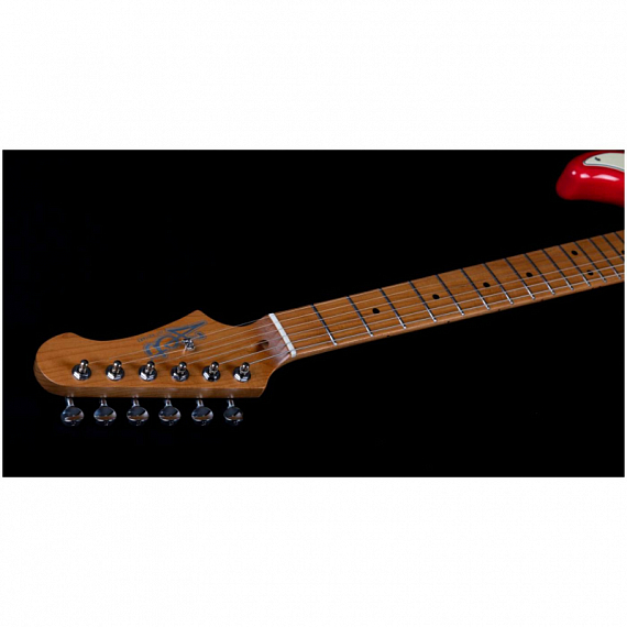 Гриф и накладка на гриф выполнены из печеного клена (roasted maple). При такой обработке поры дерева максимально сжимаются и в процессе использования вода уже не будет выходить, ваша накладка не сожмется и лады не повылазят вне зависимости от влажности и смены температуры. Плюс такое дерево выглядит очень красиво.
