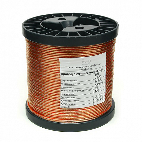 ACPC-2x0,75-100M Провод акустический гибкий плоский 2х0.75, медь, 100м, Электрическая мануфактура