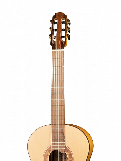 Классическая гитара, новая модель (улучшенная и доработанная). Массив ели и массив струйчатого клёна. На гитаре установлен армрест. Гриф классической ширины (52 мм).