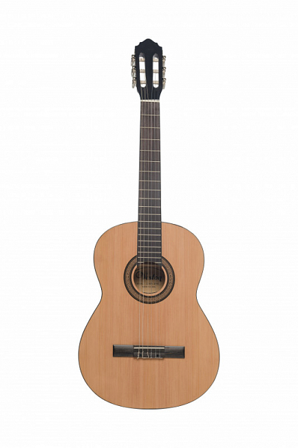 Эта недорогая классическая гитара подойдет, если вы решили купить гитару для ребенка, или сделать музыкальный подарок себе или друзьям. Как гитара для начинающих, эта классическая гитара - самое разумное решение. Эта классическая гитара с нейлоновыми струнами обладает приятным, сбалансированным звучанием.