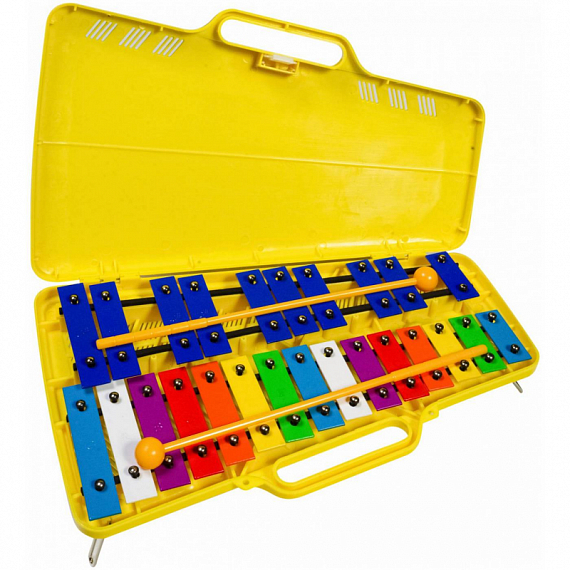 В комплекте: металлофон (25 нот) - 1 шт., палочки - 2 шт.