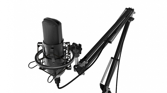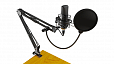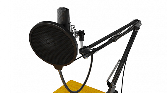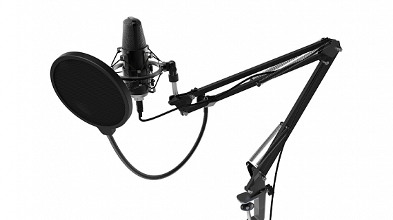Конденсаторный микрофон на стойке-пантографе со струбциной, позволяющей закрепить устройство на столе или любой другой плоской поверхности. Предназначен для звукозаписей, игр, стримов и общения в Skype