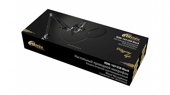 RITMIX RDM-169 black - микрофон конденсаторный на штативе + поп-фильтр