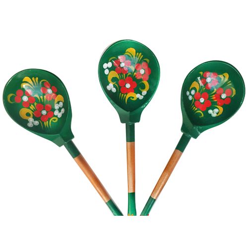 Деревянная ложка столовая роспись "Зеленушка", Хохлома LHL7201