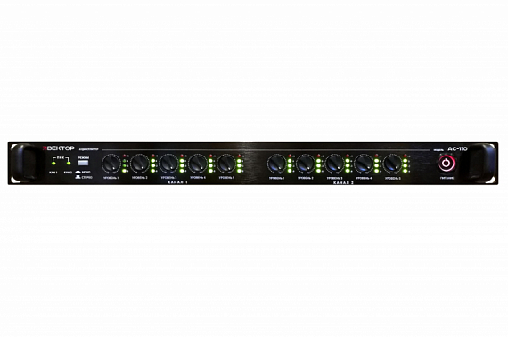 ВЕКТОР АС-110 -- распределитель аудио сигнала. 2 входа. 10 моно выходов или 5 стерео выходов
