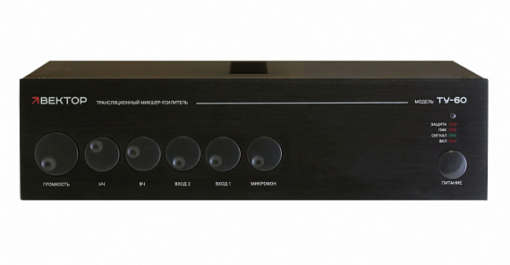 ВЕКТОР ТУ-60 -- компактный микшер-усилитель. Мощность 60Вт. Выход 100В\4-16Ом, 1 микр и 2 AUX входа